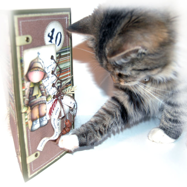 Fantastiskt fint kort! Kul idé med tapet som bakgrundspapper. Din färgläggning är helt underbar och kattungen är supersöt!